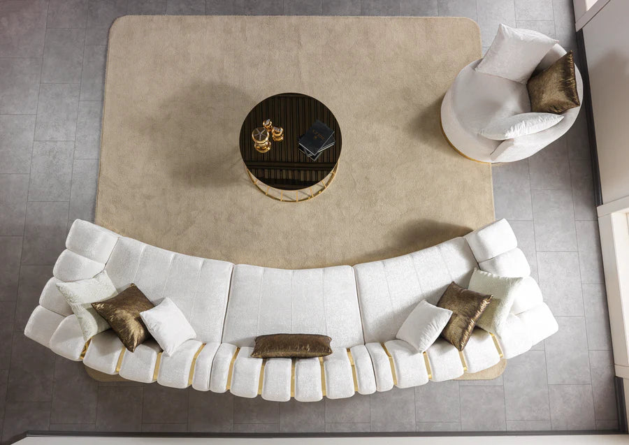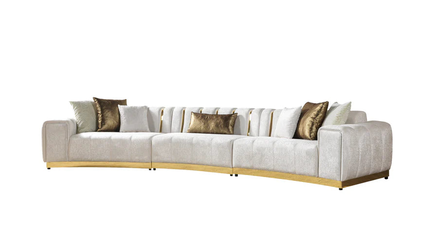 Michelle Ivory Velvet 3-Piece Curved 165" Sectional