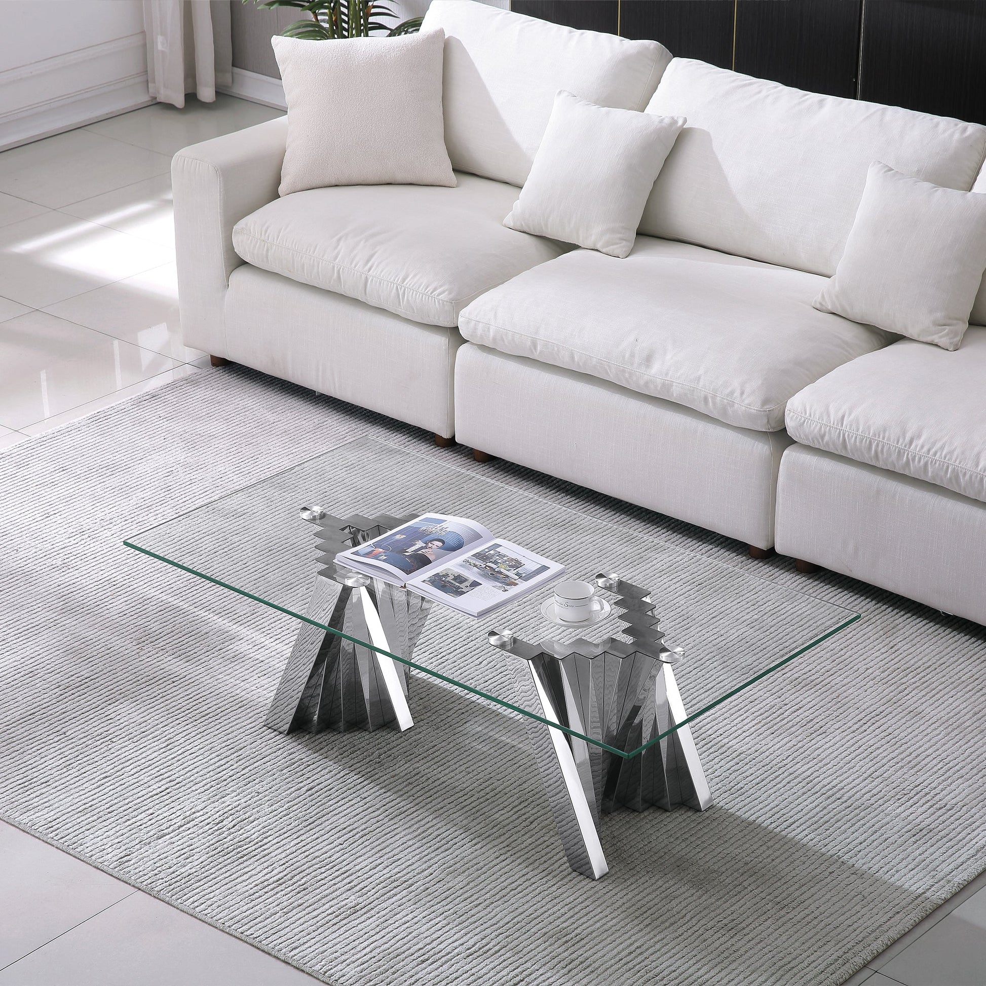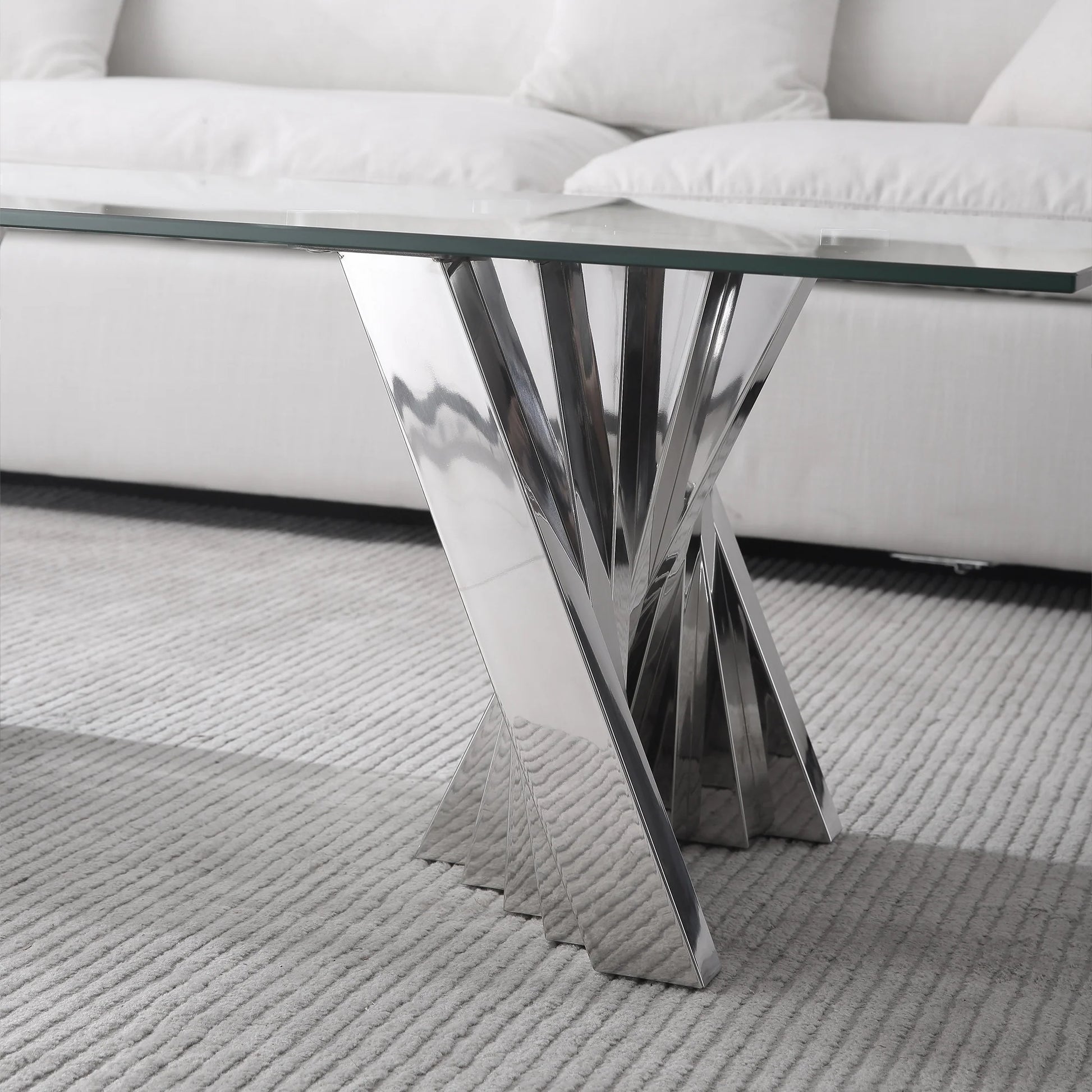 Elevate your living space with the CT031 Coffee Table, featuring a durable 10mm tempered glass top that ensures lasting strength and safety. Its sleek 201 stainless steel frame provides sturdy support with a modern touch, while the luxurious gold or silver mirrored finish adds a reflective elegance that brightens any room. This coffee table combines practical durability with sophisticated style, making it a striking centerpiece for your home.