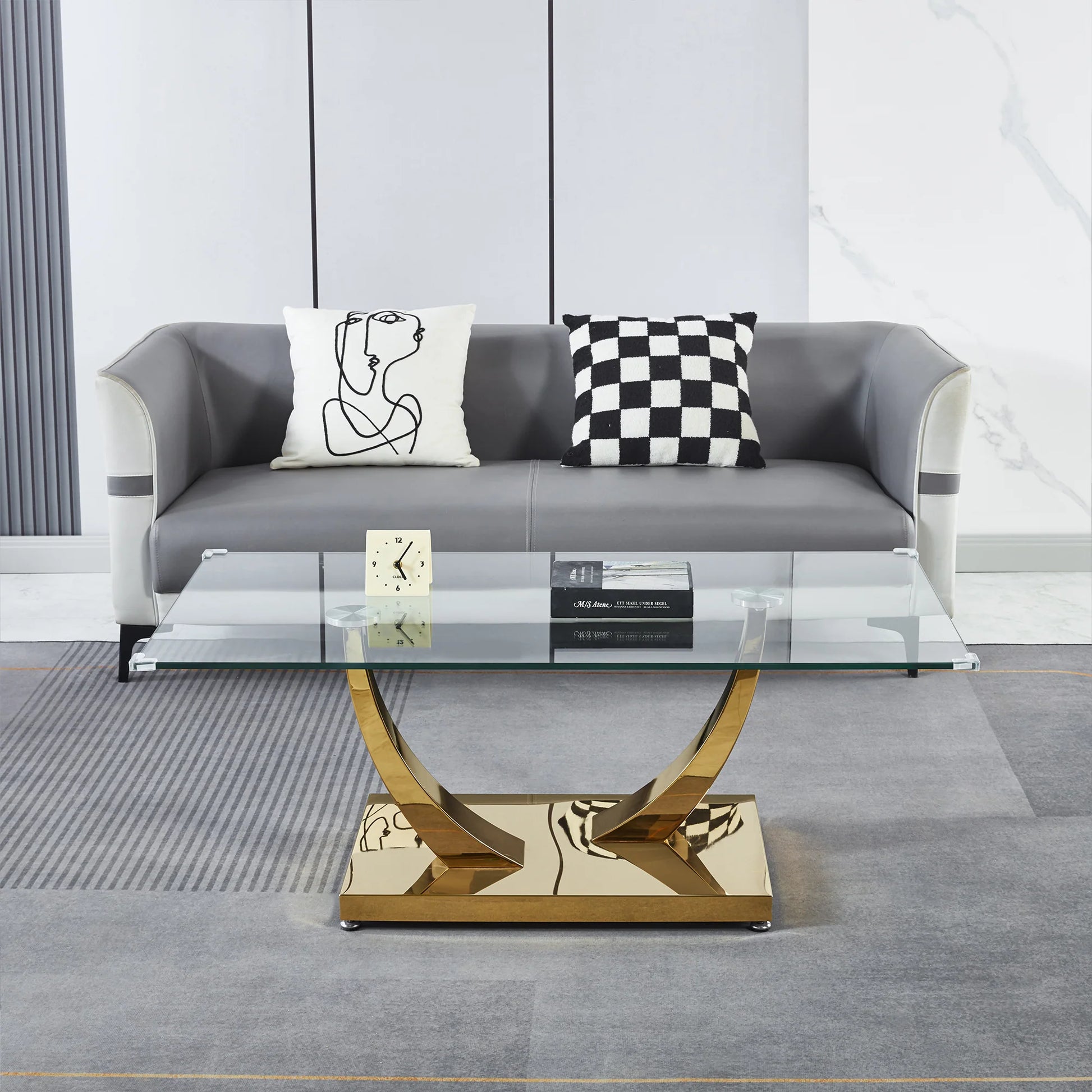 The CT035 Coffee Table features a robust 10 mm tempered glass top paired with a durable 201 stainless steel frame. Its elegant gold or silver mirrored finish adds a luxurious shine, making it a standout piece that enhances any living area with both style and strength. Perfect for those who value quality and sophisticated design.