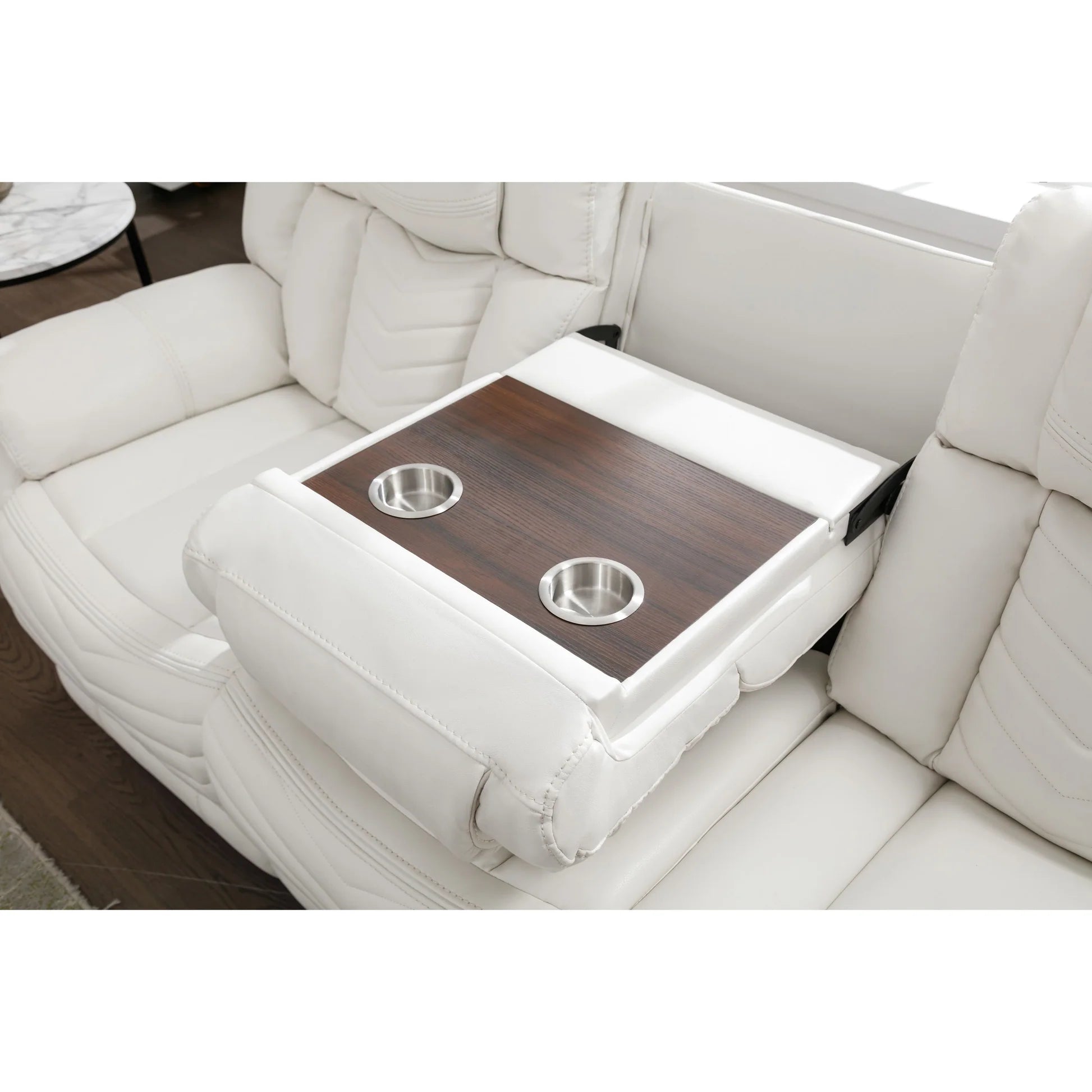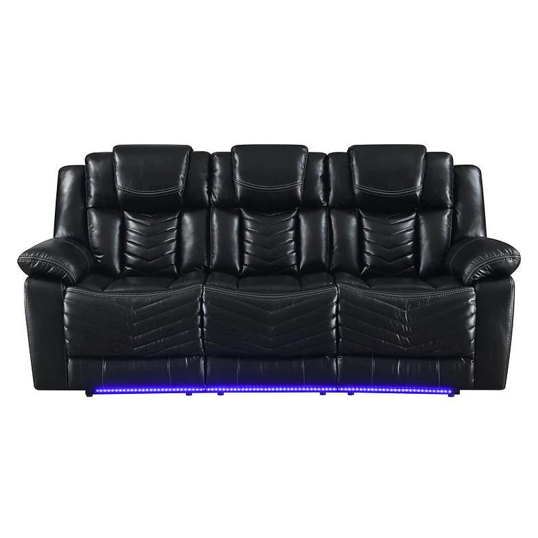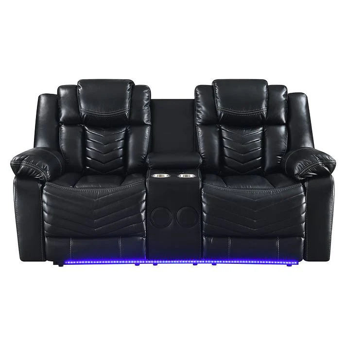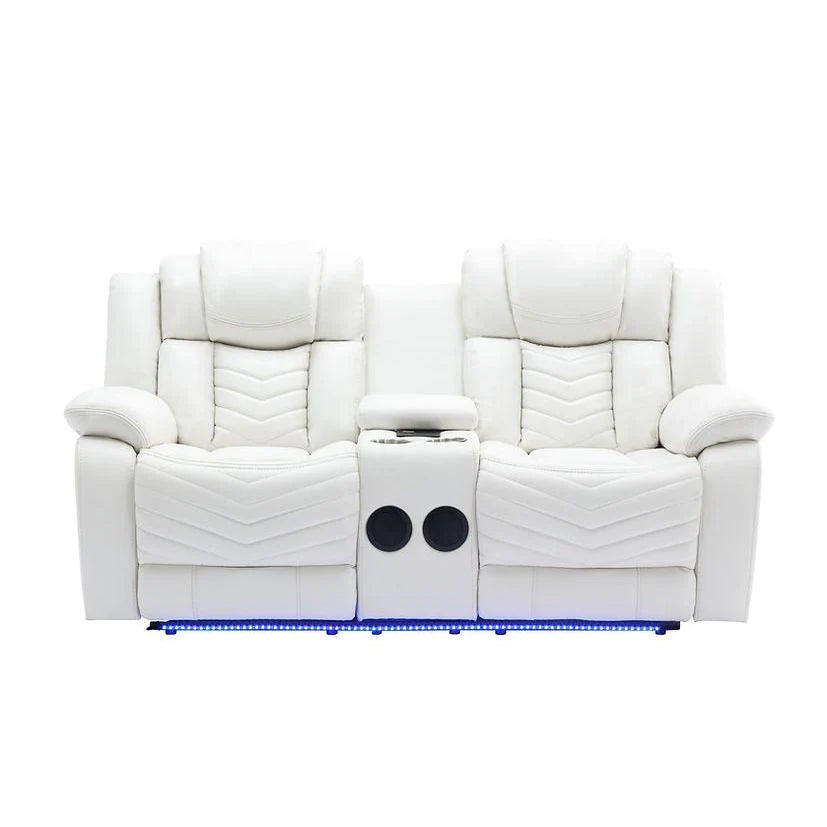 The S2021 Lucky Charm collection offers versatile comfort and modern convenience. Choose the reclining sofa with a drop-down table and LED lighting for a functional centerpiece. The reclining loveseat features a console, built-in speakers, and LED lights, perfect for immersive relaxation. Complete your setup with the rocker recliner, designed for smooth motion and added comfort. Each piece blends sleek design with practical features to enhance your living space.