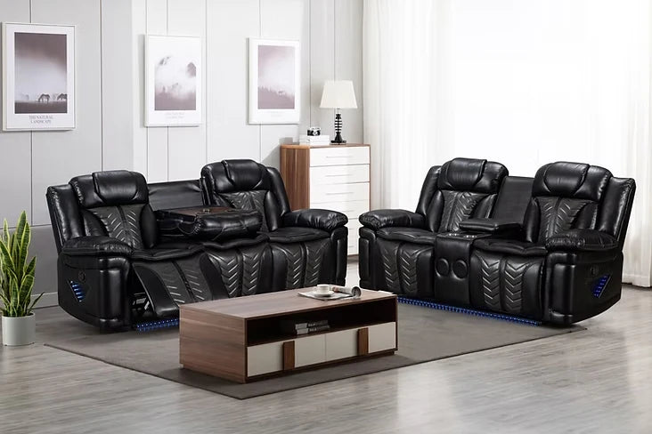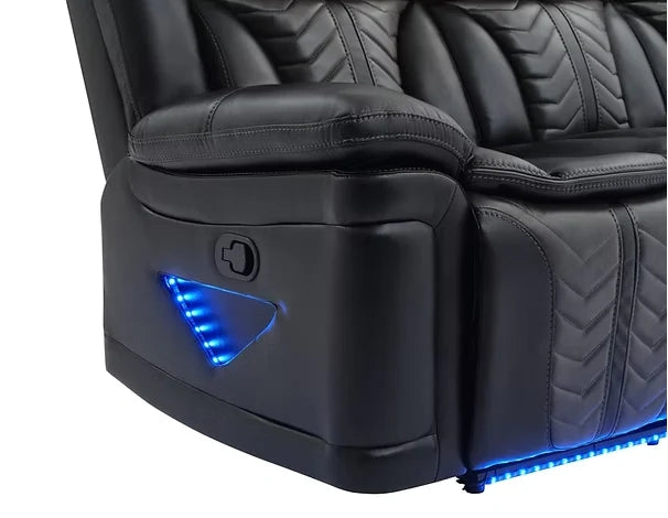 Experience ultimate comfort with the S2025 Innova 3PC Recliner in Grey. This recliner features a built-in wireless charger and multi-color LED lights in the front and arms, making it a perfect addition to any modern living space. With a convenient dropdown table, console, and remote control, relaxation has never been easier. Upgrade your home today!